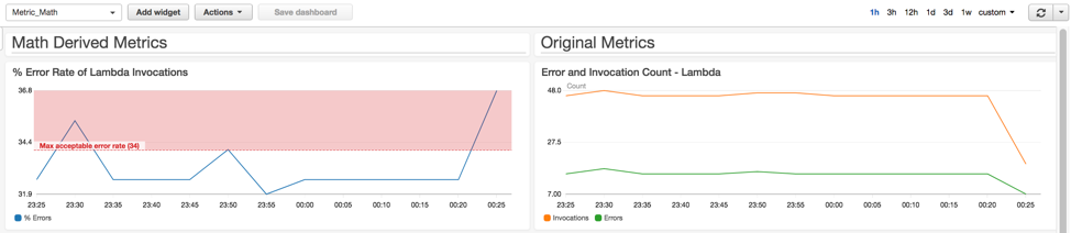 As I’m creating new metric math expressions, I can add them to a CloudWatch dashboard for easy referencing and viewing.