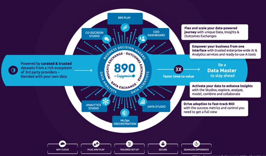The vision for 890 by Capgemini is to be the engine that provides seamless integration with data marketplaces. The product enables organizations with end-to-end solutions to harness the power of data with data exchange, insights exchange, and outcome exchange all in one place.