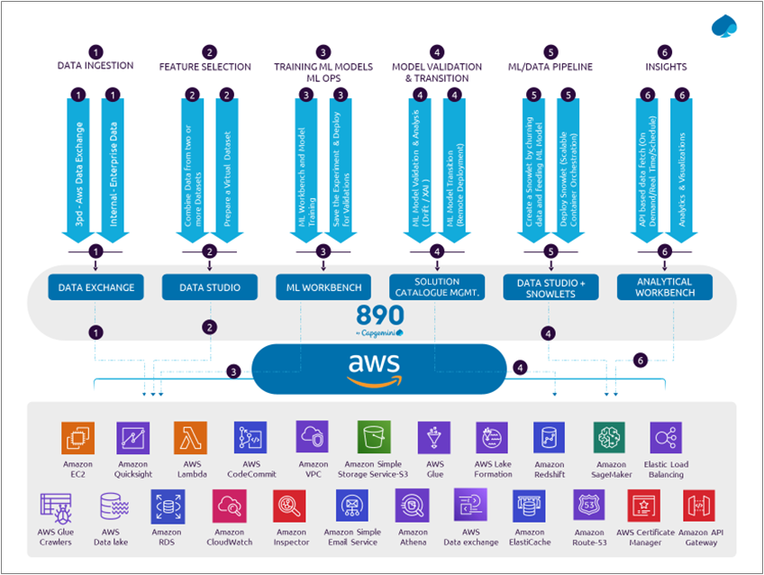 Leveraging the capability of 890 by Capgemini with AWS, complex business problems can be solved through end-to-end orchestration of data and AI/ML pipelines enabling you to bring data to life and make key decisions with confidence.