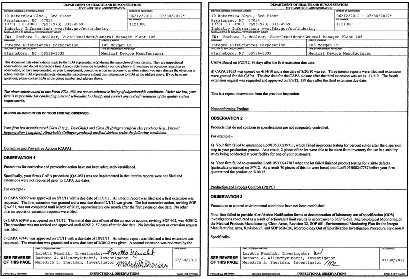 Take FDA Form 483 observations, for instance. An FDA 483 observation is a notice issued by the FDA to identify potential regulatory violations (such as processes, controls, products, or employee practices) discovered during a routine inspection.