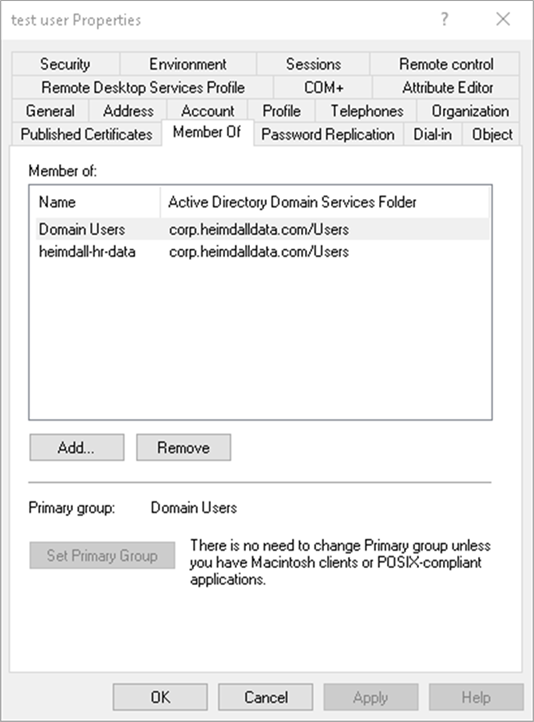 The first step in configuring the solution is to prepare Active Directory groups to filter at the Heimdall Proxy level. We created a group prefixed “heimdall-” with the rest of the name representing the access control desired. In this case we used “hr-data”.