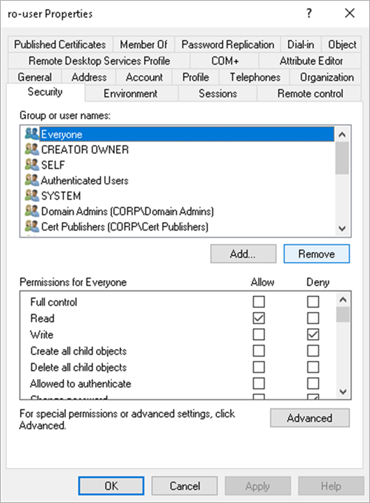 Optionally, you can create a read-only user to act as a security principle for performing queries against Active Directory (we will follow the example with this).