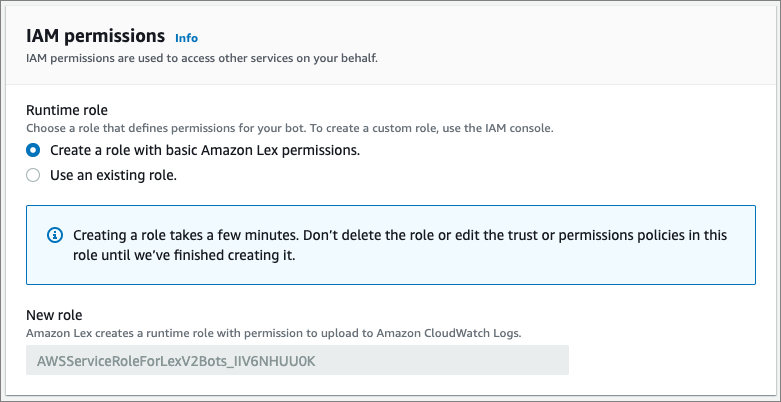 Figure 3 – Role configuration options for Amazon Lex bot.