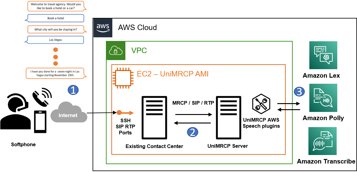 To succeed in this integration challenge, Universal Speech Solutions (also known as Unispeech) created the UniMRCP server and Amazon Lex, Amazon Transcribe, and Amazon Polly plugins that enable the non-native integrations. Unispeech is the implementer of the open-source, cross-platform, and industry-standard Media Resource Control Protocol (MRCPv1 and MRCPv2).