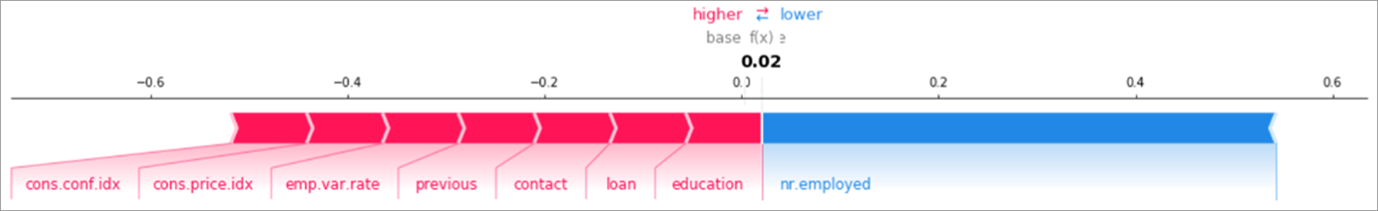 As a result, the model predicts a 2 percent chance this individual will open a term deposit. With these insights, you can help your users understand the predictions and earn their trust.