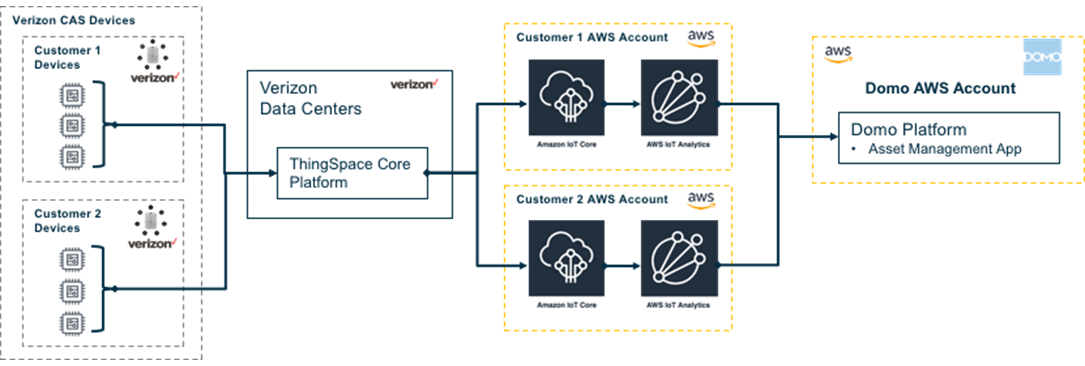 With the AWS-Verizon-Domo solution, we’ve made sure deployment is streamlined so that resources are created within your AWS account. From there, all configuration is automated via the Domo platform.