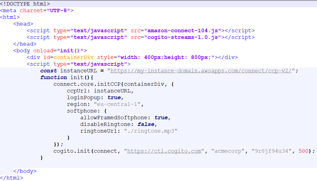 Once cogito-streams.js has been obtained, clients will need to call the highlighted cogito.init() method and pass in the Streams API connect object as an argument.