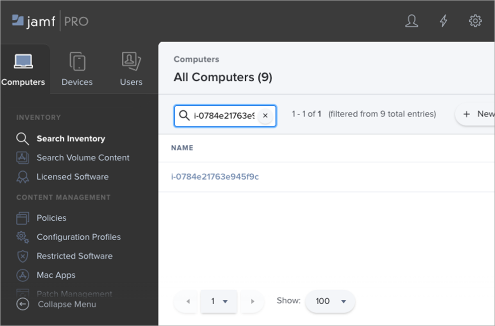 To find your EC2 Mac instances, click the Computers toolbar and click Search Inventory. In the filter text box, type in the instance ID and click Enter. The computer will show up in the inventory list.