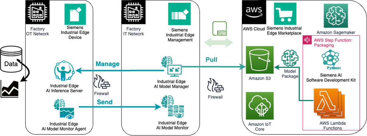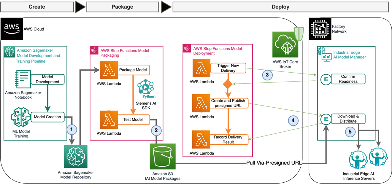 The following solution describes the “pull” deployment mechanism by using AWS services and Siemens Industrial AI software portfolio.