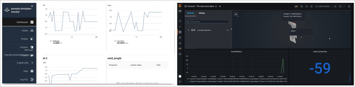 - AWS Managed Grafana: Dashboard for AWS IoT TwinMaker built on AWS Managed Grafana monitors the welding machine in real-time.