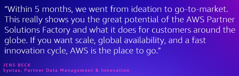 Leveraging AWS Partner Solutions Factory, partners like GE Digital, Syntax, and Pepperl & Fuchs are working together to deliver a turnkey predictive solution to industrial customers in as little as a day and scale globally.