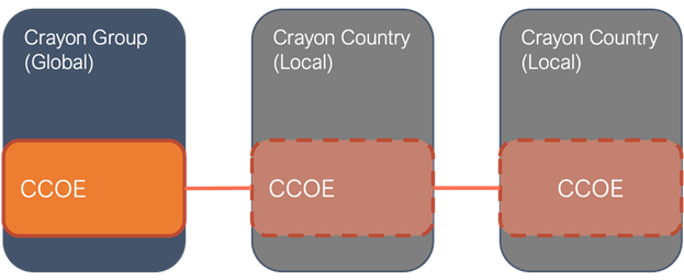 As individual subsidiaries grow, a semi-distributed CCoE will be used where local consultants act as CCoE extensions to be closer to the local market and end customers. This model allows Crayon to scale while supporting a large number of subsidiaries at the same time.
