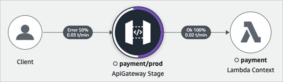 Figure 4 – AWS X-Ray percentage of successful and error transactions.