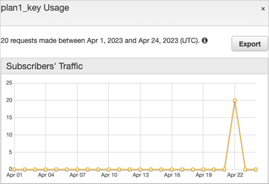 Next, you could see the API consumption plan per customer in API Gateway > Payment > Usage Plans > Payment_Usage_Plan > API Keys (tab) > Usage.