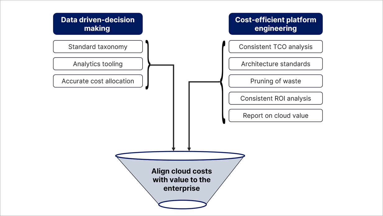- Nudge the organization to align cloud spend to enterprise value.