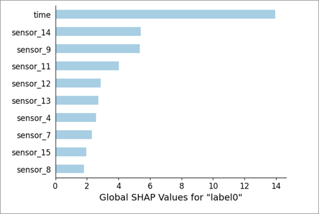 It’s easy to understand from the plot that the feature “time” is the most important one here, followed by the two features, “sensor_14” and “sensor_9”.