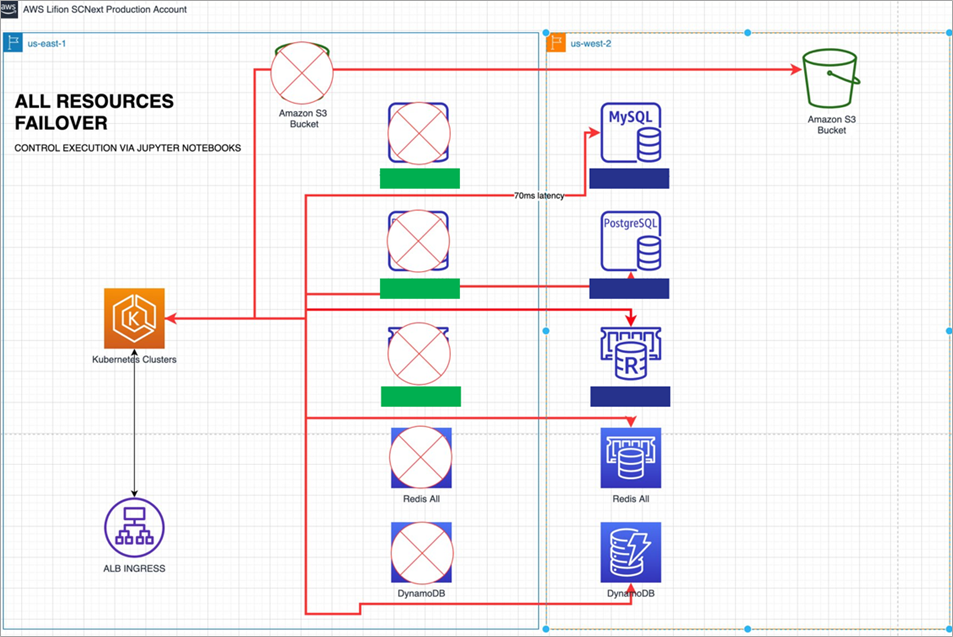 Instead of maintaining cold, warm, or hot cloud-native infrastructure in another region, we are able to use our infrastructure as code (IaC) and pipelines to instantiate new, decentralized, service-driven datastores minutes after a region-level incident occurs.
