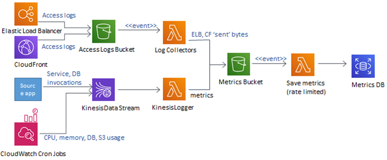 . - The ‘bytes_sent’ metrics harvested from the ELB and CloudFront access logs are aggregated before they get pushed to the metrics database. However, there’s opportunity to aggregate the rest of the metrics and do calculation based off aggregated values instead of using raw granular events, since the solution will not scale well and is not very efficient. We parked it as a future improvement.