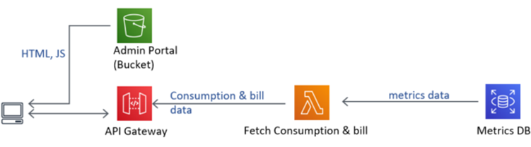 . - Finally, an HTML-based admin portal is exposed as an Amazon S3 website. It can call a Lambda function called ‘fetch_consumption’ via an API exposed using the Amazon API Gateway.