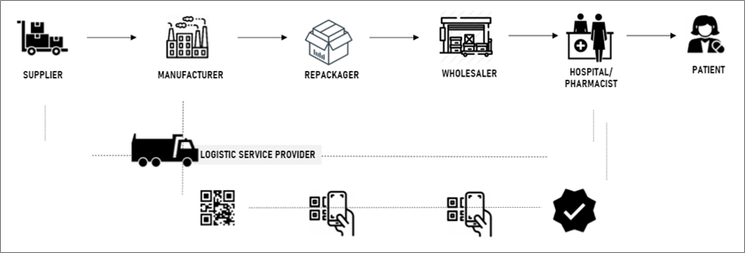 - If the QR code is duplicated and the drug is simultaneously available in two places, with the help of audit information that’s been added each time and at every juncture, the system can detect the anomalies instantly and the consumer will be notified.