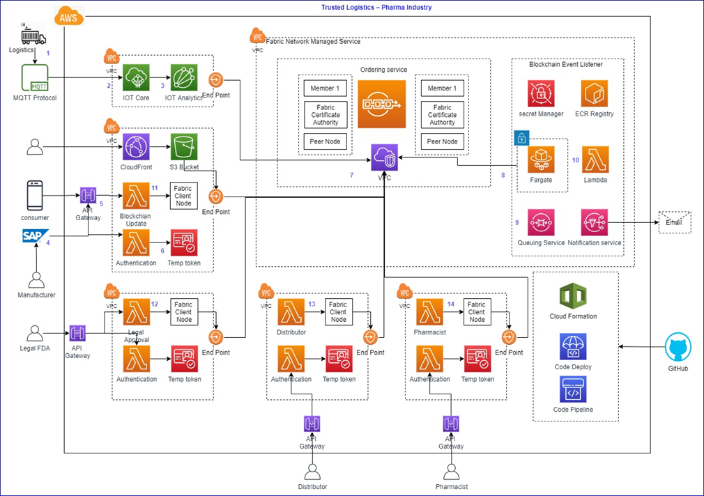 In this post, we will share an architectural reference from Capgemini for an Amazon Web Services (AWS) solution called Trusted Logistics that can help solve these problems in the pharmaceutical industry.