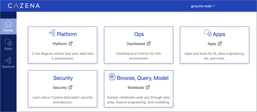 Cazena has provisioned an AWS data lake that you can access instantly. Not only can you see the platform and ops dashboards, you can also run analytics as well as both SQL and machine learning workloads.