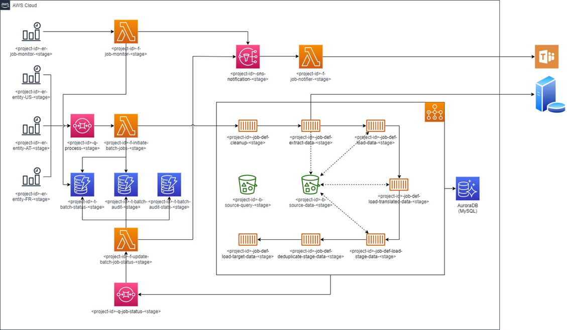 The solution depends heavily on the availability and reliability of configuration documents for each of the entity’s batch processes. It leverages Amazon Simple Storage Service (Amazon S3), a fully managed object storage service that offers industry-leading scalability, availability, security and performance.
