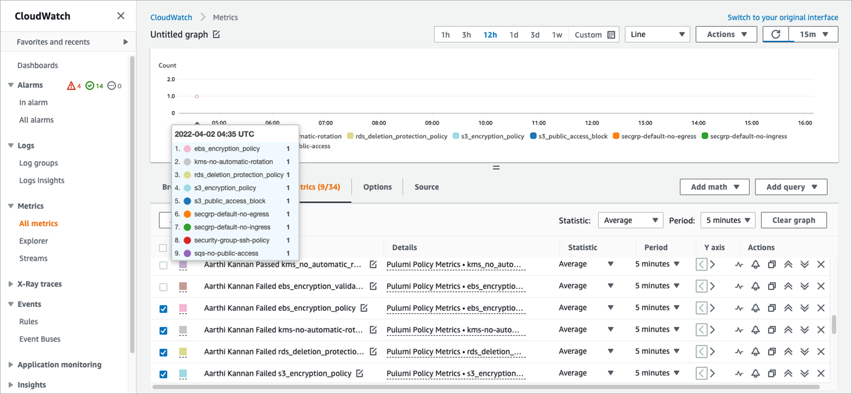 As an added touch, you can create Amazon CloudWatch metrics on non-compliant infrastructure. Refer to the GitHub repo for more details on the configuration.