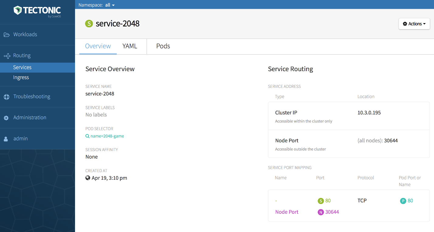 Once that’s been deployed, I can again verify the configuration in the Tectonic console: