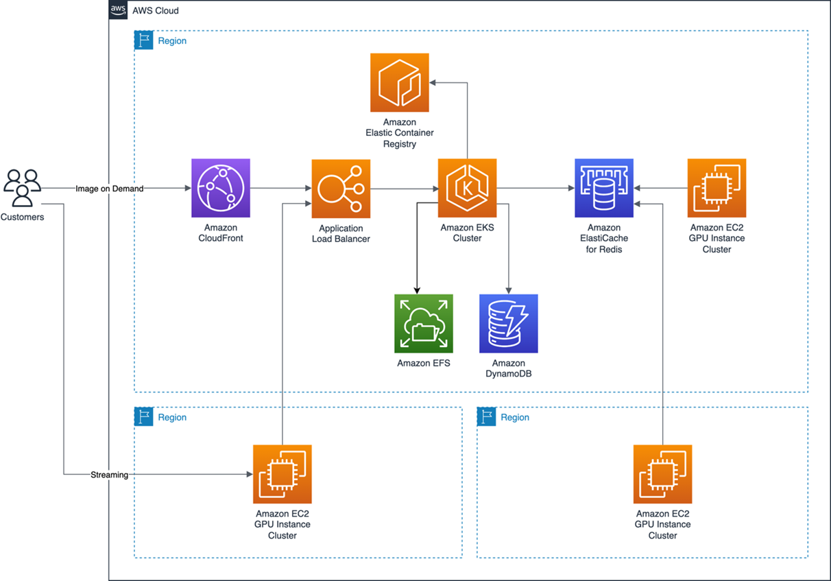 - Amazon EC2 GPU Instances: Amazon EC2 instances with latest NVIDIA tensor core GPUs, running Unreal Engine for rendering 3D streaming and 2D image-on-demand workloads.