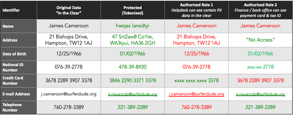 Figure 1 – Example of tokenized data in Protegrity’s solution.