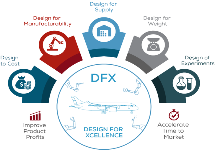 For a given product design, customers can use digital factories to identify and select less expensive raw materials, cheaper manufacturing processes offering faster cycle times, and alternative finishing options. The digital manufacturing intelligence output from a digital factory is what enables a variety of design for excellence (DfX) initiatives.