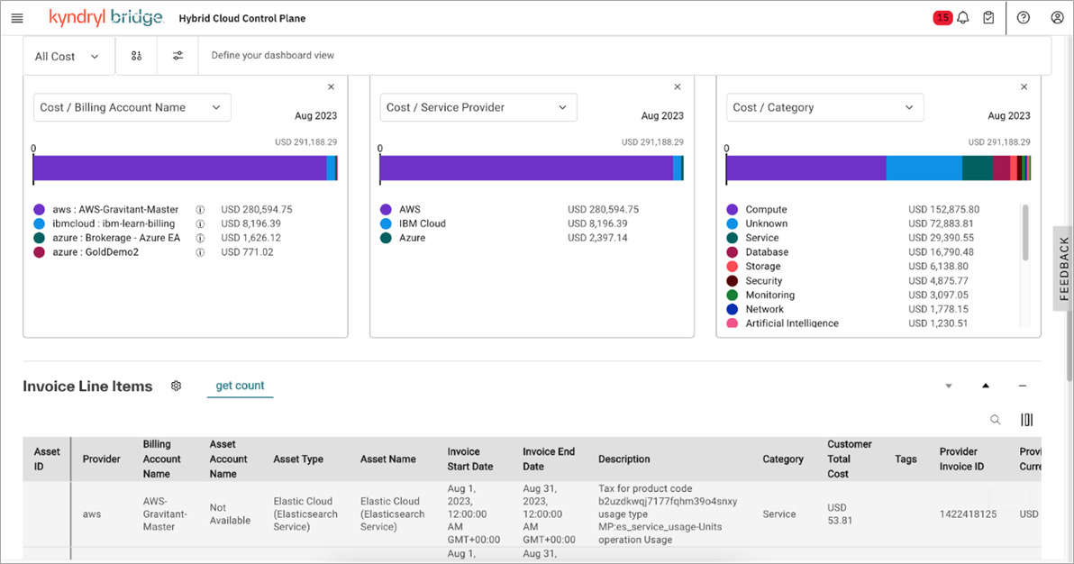Kyndryl’s comprehensive range of services are accelerated by leveraging FinOps, a Kyndryl Bridge application that provides a complete data-driven view of costs and utilization of AWS services and hybrid IT environments.