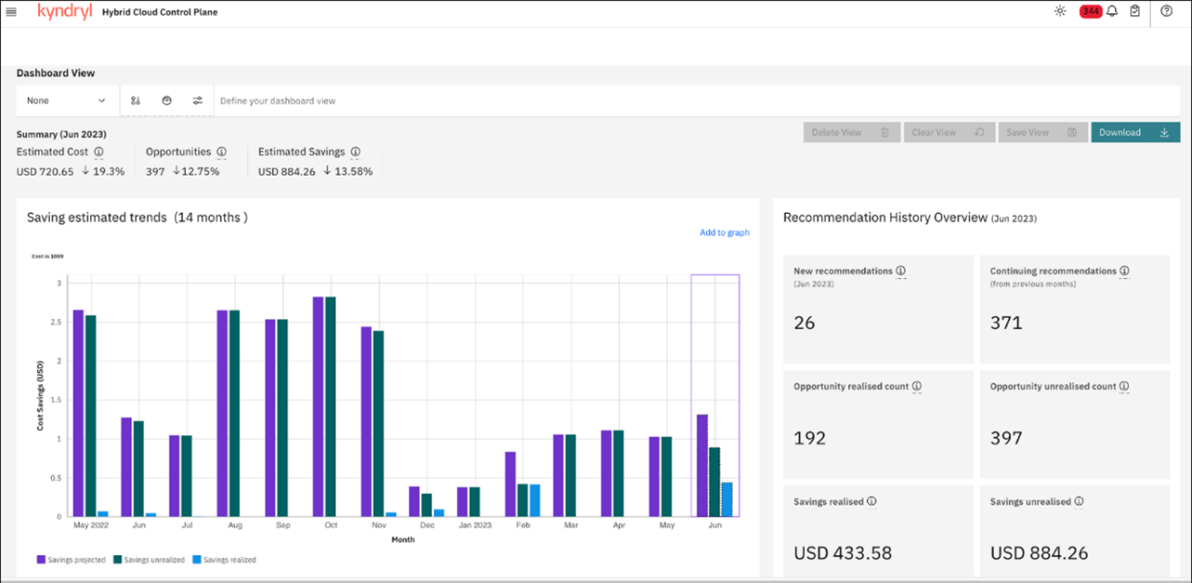 - Cost optimization and savings: Customers can expect to see up to 30% savings by consolidating visibility and optimization of costs across multiple providers through Kyndryl’s cost optimization recommendations.