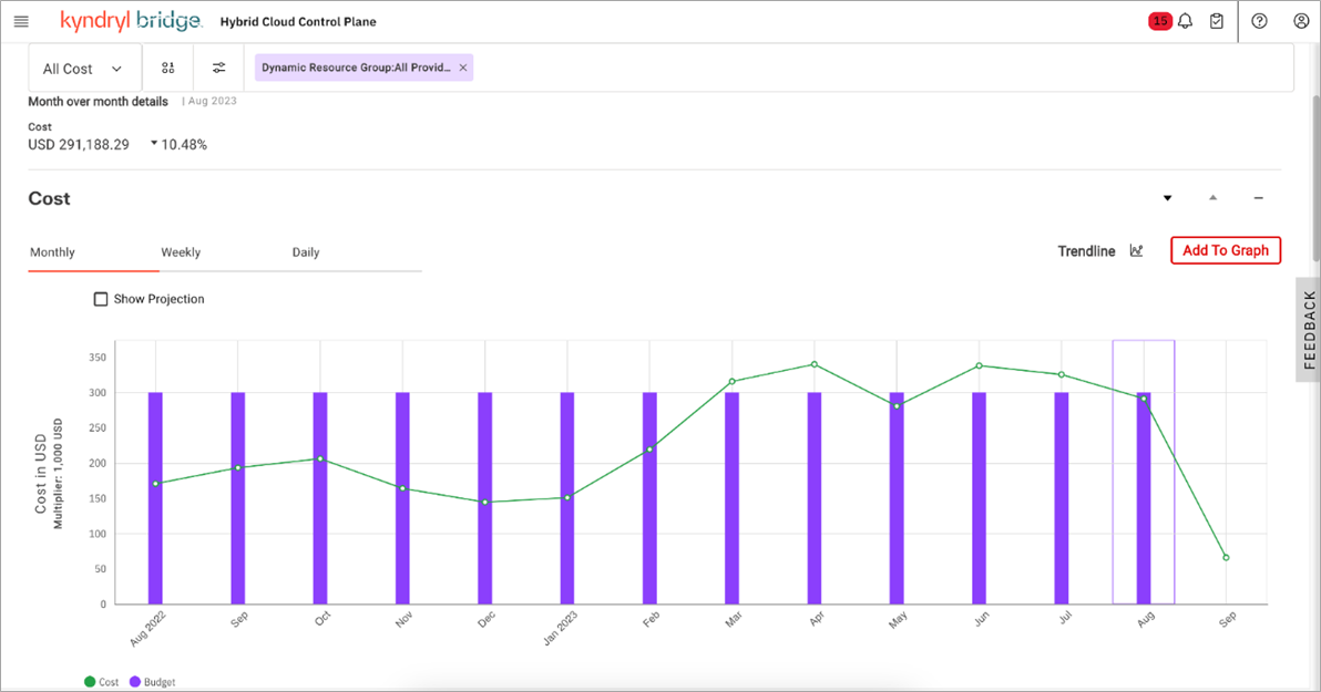 Figure 5 – Kyndryl Bridge cost and budget tracking.