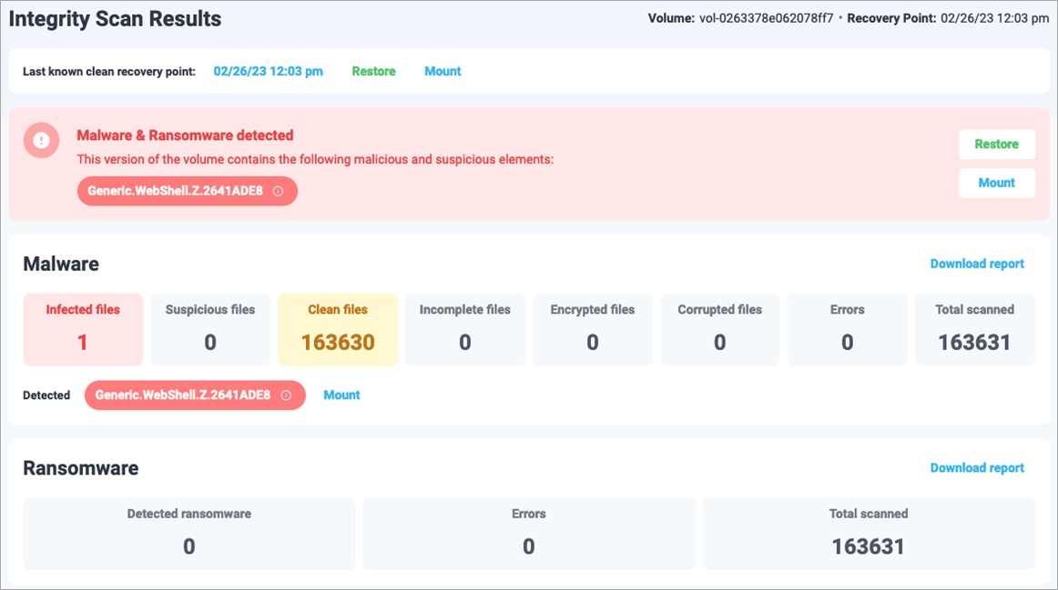 Figure 2 – Restore infected volumes for investigation and clean volumes for recovery.