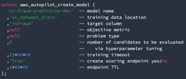 Your analysts can use SQL to clone and manipulate datasets through their everyday editor and run an AutoML job with a single command: