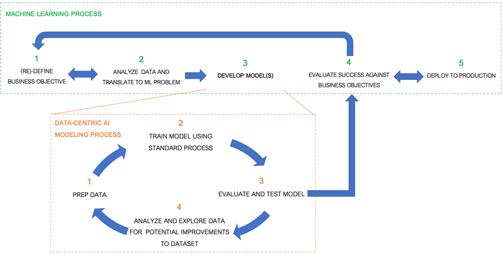 Figure 1 – Example process flow for DCAI model development based on industry standards.