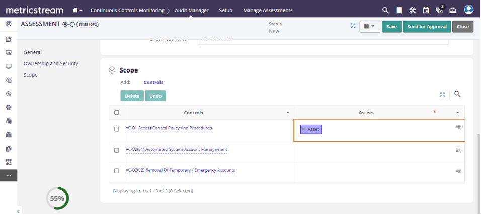 Using the Assessment Creation form, you can scope the AWS accounts and the GRC controls for assessment and continuous monitoring.