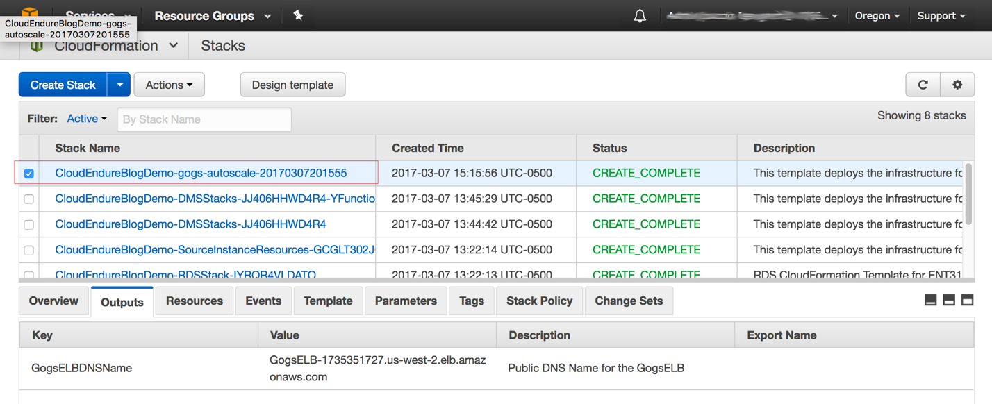 username– User name for CloudEndurepassword– Password for CloudEndurehosttomigrate– Name of host to migrate in the CloudEndure dashboard. This value won’t be available in the dashboard until after CloudEndure starts the initial replication process.stackname– Name of your CloudFormation stack. Only change this if you choose to change the default value of CloudEndureBlogDemo when naming your CloudFormation stack.keypairname– Key pair for launching the Gogs automatic scaling stackgogsdns– Route 53 domain alias that you want to map to your ELB load balancer for Gogs automatic scaling