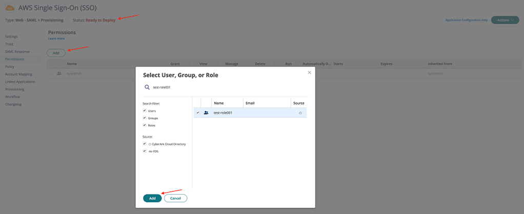 - Lastly, to deploy and enable this new application you need to assign it to certain roles or users. Go to the Permissions tab and choose Add.