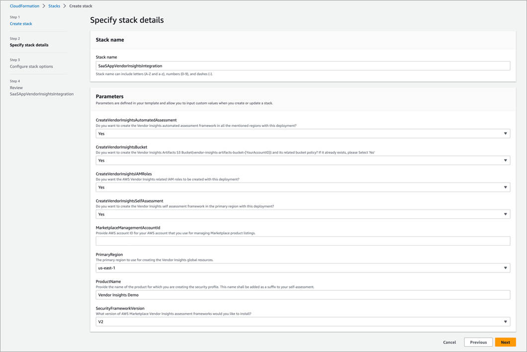 Figure 5 – AWS Marketplace Vendor Insights onboarding stack details.