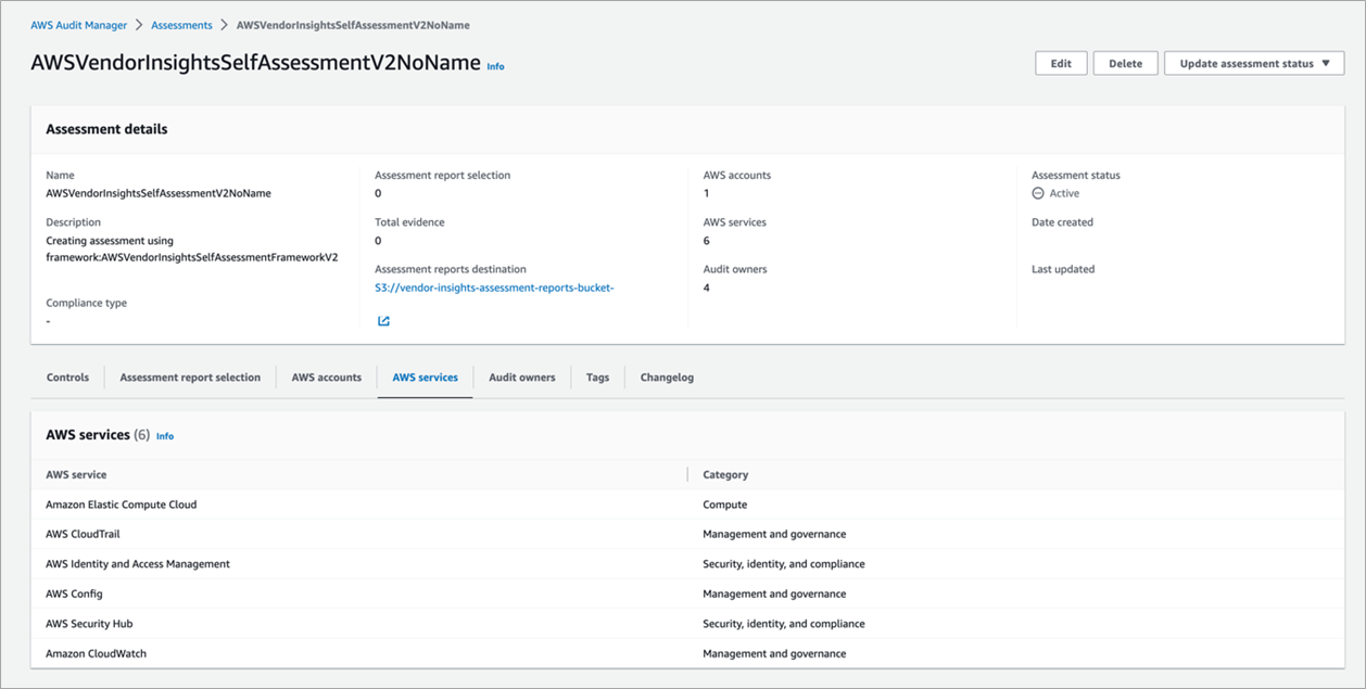 Figure 6 – AWS Audit Manager self-assessment.