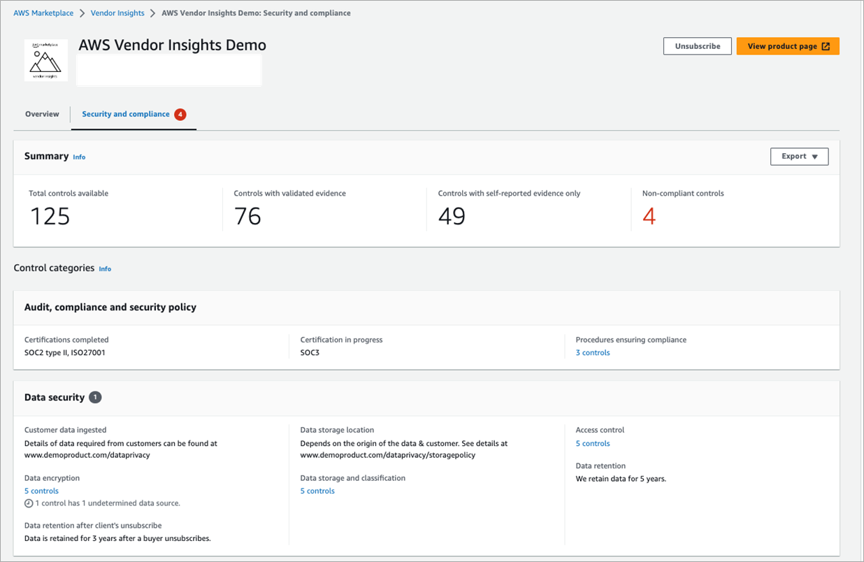 Figure 7 – AWS Marketplace Vendor Insights overview.