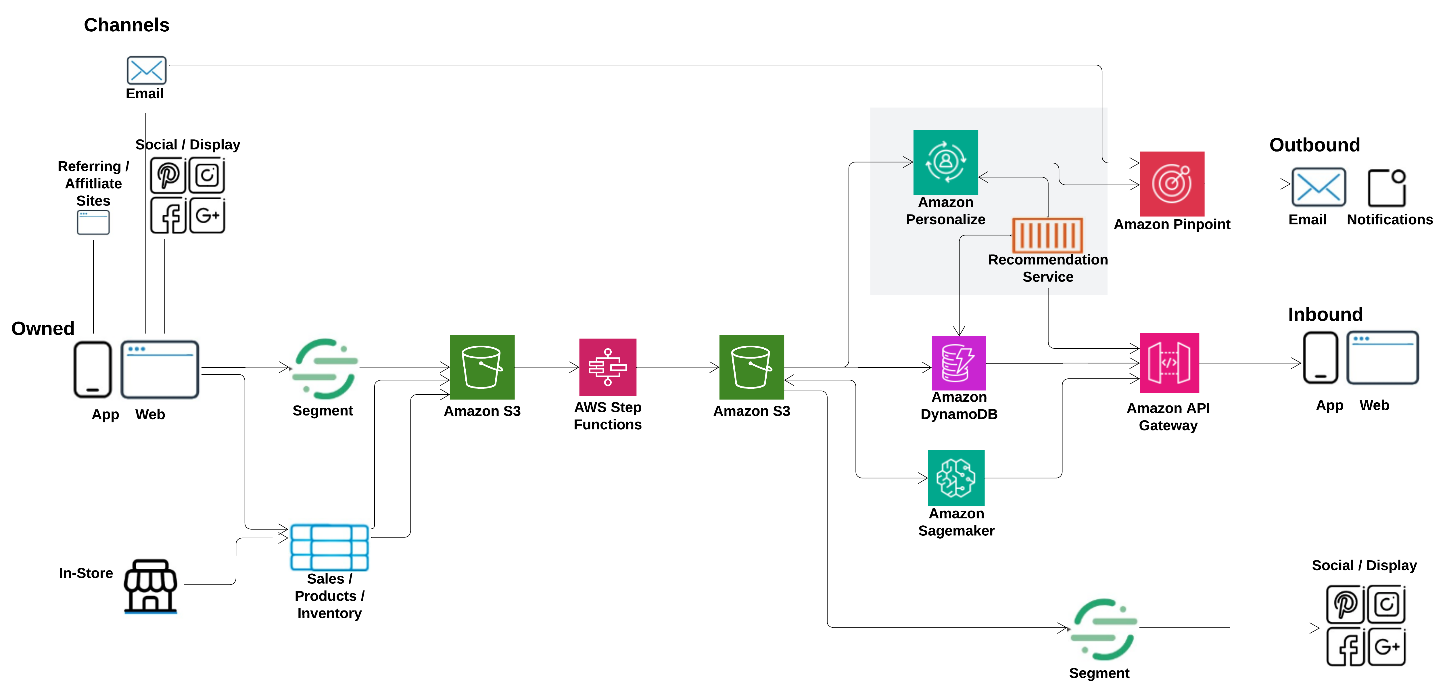 In absence of a CDP solution in place, Slalom’s platform can be extended with AWS services to unlock insights into customer segmentation. Section 10 on the diagram in Figure 4 shows the additional capabilities required to incorporate a CDP into the platform.