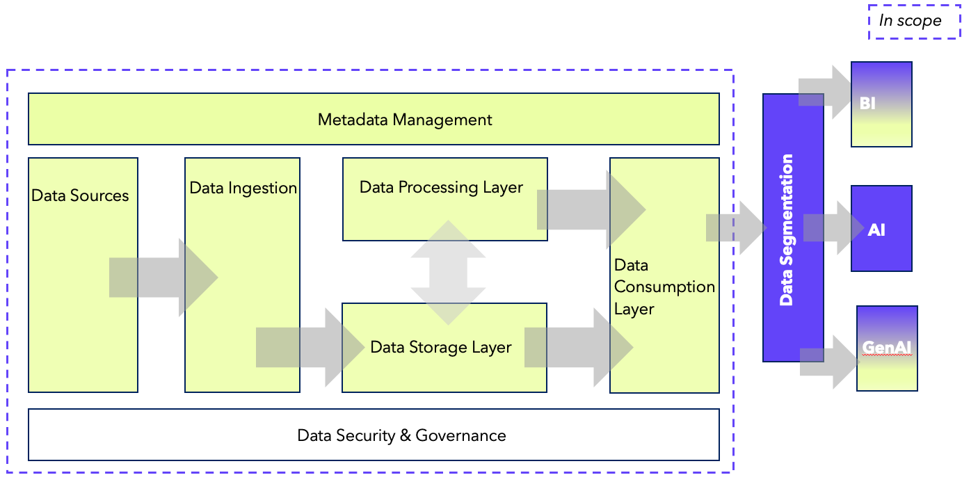The capabilities of the platform are illustrated below and concentrate on ingesting and presenting the data in a centralized layer (data consumption layer) in a way that empowers organizations to focus on segmentation and insight. By leveraging repeatable formats, organizations can start delivering insight in a matter of weeks rather than months.