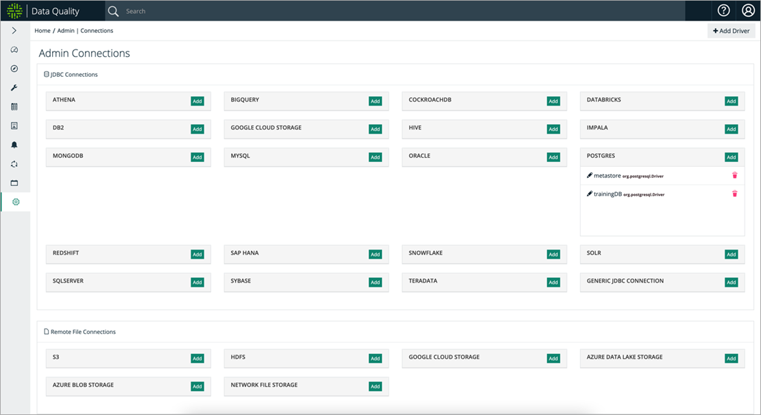 To configure a connection, Collibra DQ needs to access data from an underlying data source where it can perform its data quality operations; for that, it can connect to any database with a JDBC connector.