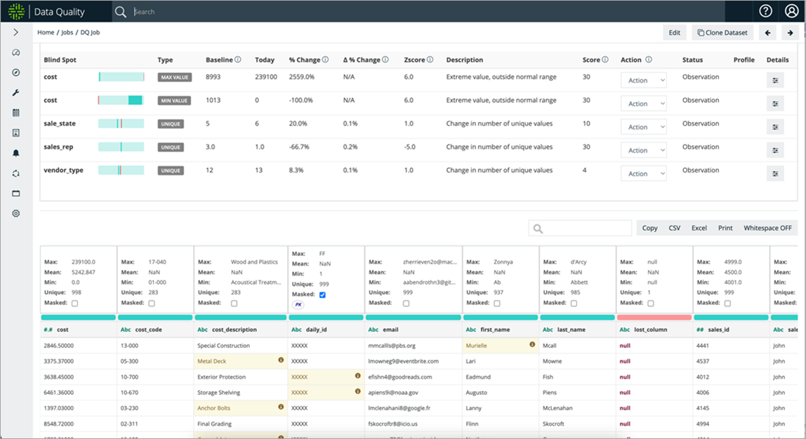 The above labeling and data quality checks are performed using Collibra DQ by leveraging advancements in data science and machine learning (ML) instead of manual rules, thus reducing the cost of managing these datasets at scale.