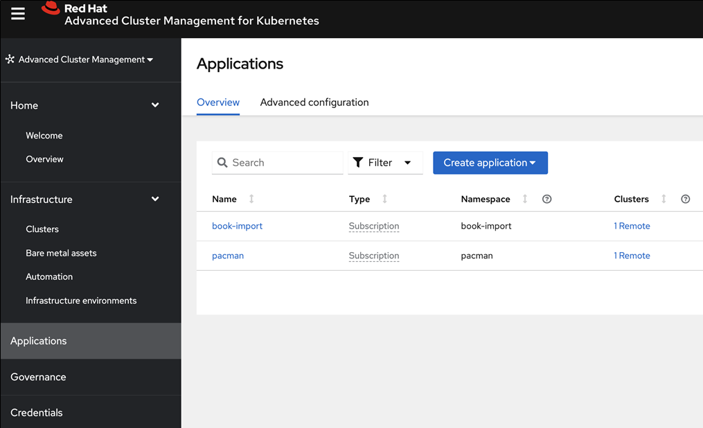 - Install Red Hat Advanced Cluster Management. For a step-by-step guide to installation, read this blog post.