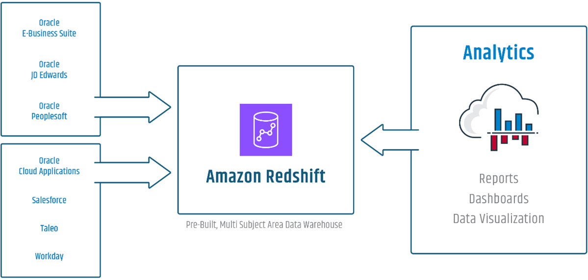 Apps Associates’ pre-built Analytics Accelerators automate the extraction, transformation, and loading of data from popular cloud-based and on-premises ERP and CRM systems into Amazon Redshift. This enables organizations to get up and running in a matter of weeks with a detailed, cross-domain data and analytics solution.
